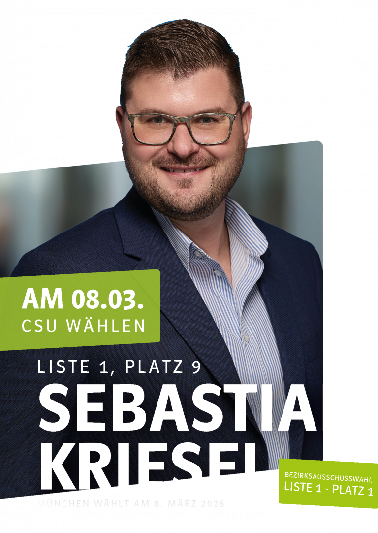 Sebastian Kriesel – CSU Stadtratskandidat- Liste 1 – Platz 9 / Bezirksausschusswahl Liste 1 – Platz 1