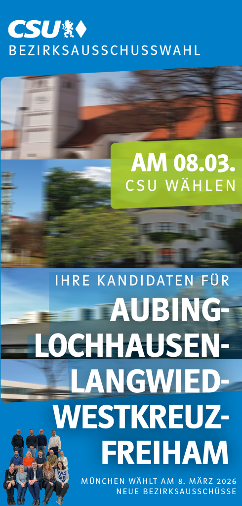 Auf meiner Seite finden Sie künftig alle wichtigen Termine der CSU Aubing-Lochhausen-Langwied-Neuaubing-Westkreuz-Freiham – übersichtlich, aktuell und direkt aus dem Stadtteil.